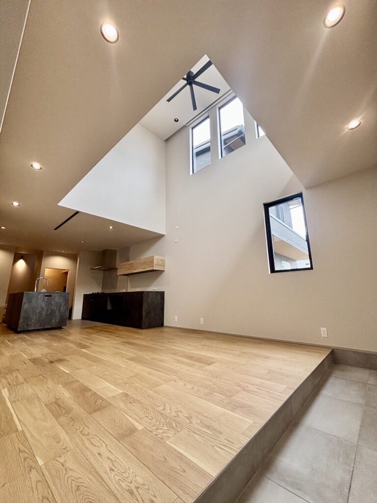 室内には土間リビングを設け、日常に心地よい“余白”と個性を生み出します。